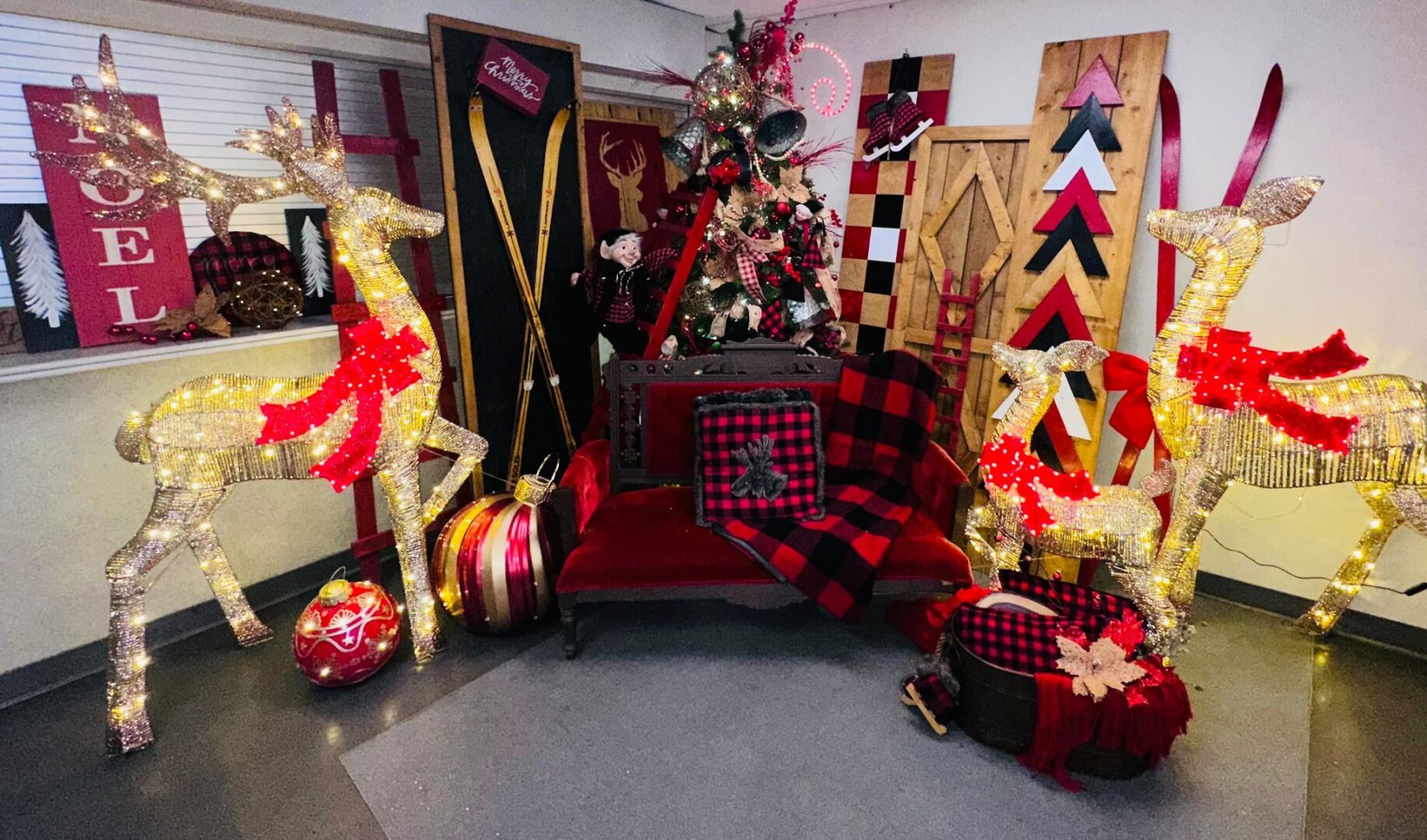 Ce décor sera rempli de skis, des rennes, de rondins de bois, de bûches, de petits chanteurs et d’un père noel gonflable rentrant dans une cheminée. Le sapin aux couleurs féérique fera plaisir au bucheron qui sommeille en vous.