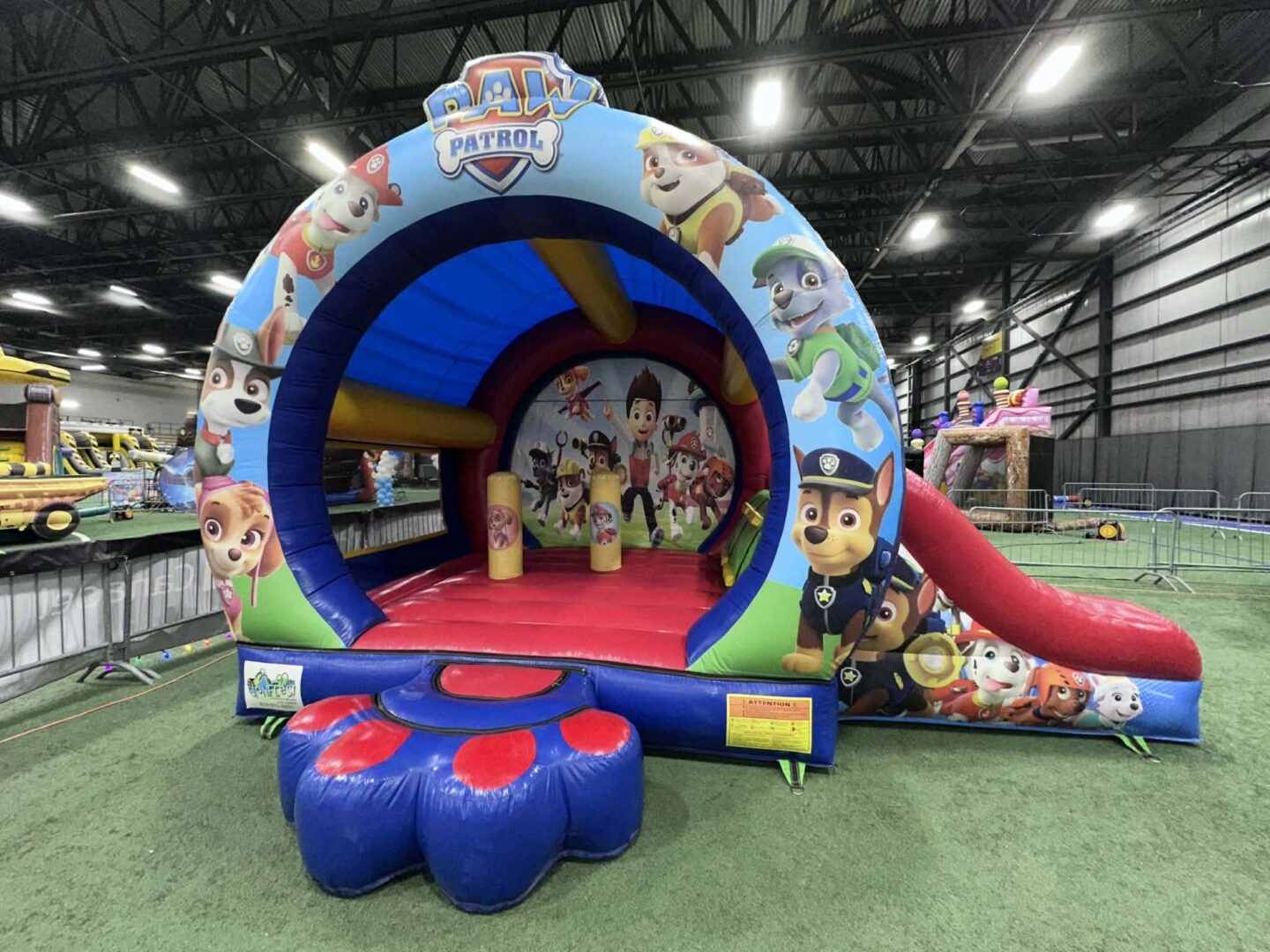 ** Ancrages (gazon) ou sacs de sables (asphalte) fournis lors de la location de ce jeu pour le solidifier sur le sol.